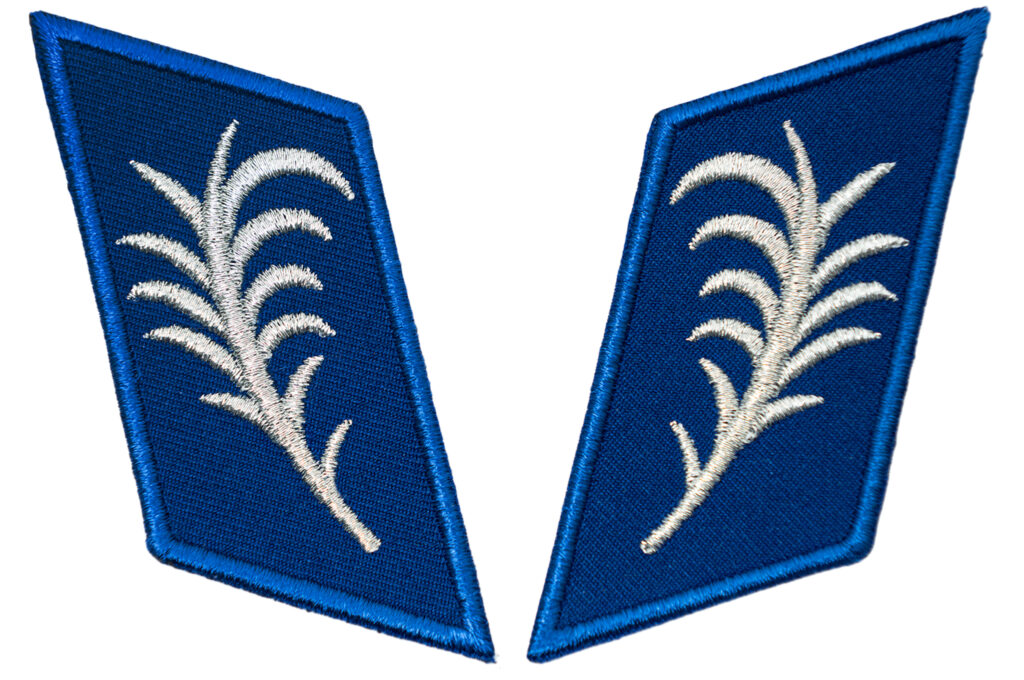 Patki posiadają standardowe mocowanie umożliwiające łatwe przyszycie lub przymocowanie do kołnierza zgodnie z przepisami ubiorczymi.